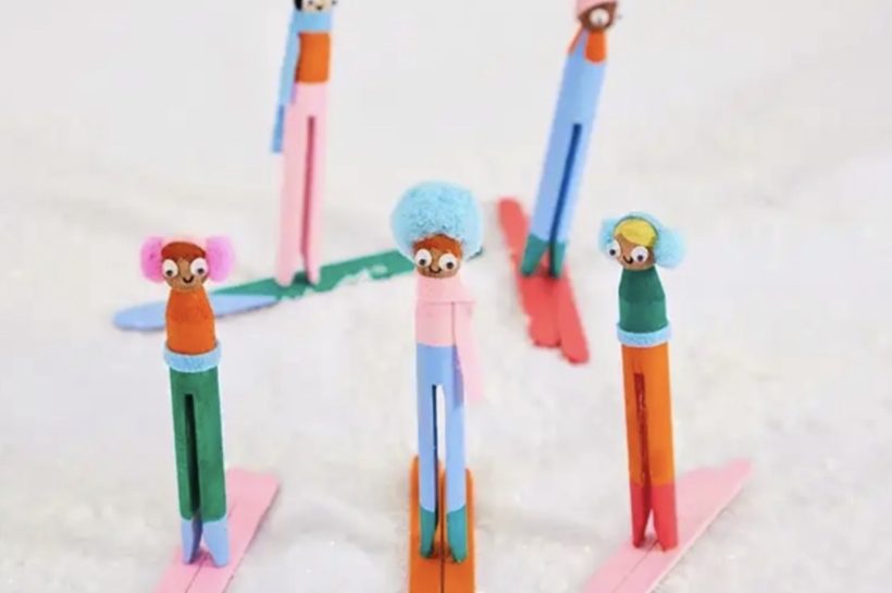 What you need:– Wooden peg dolls– Wooden craft sticks (for skis)– Paints & brushes– Glue– Felt/pom-poms for accessories– Mini googly eyes and a marker Steps: That’s it — simple steps to make fun skiing peg dolls ready for winter play or decoration